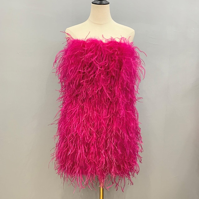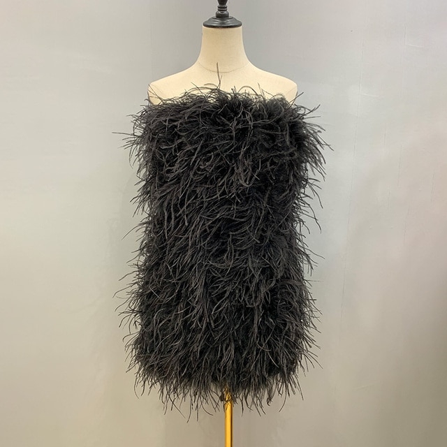Elegant 100% Ostrich Feather Mini Cocktail Dresses Sexy Strapless Short Prom Dress Wedding Birthday Party Gowns S4082
