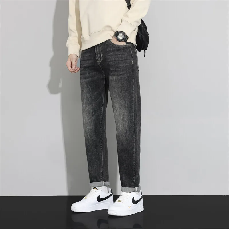 Fashion European American Style Stretch Men Jeans Luxury Men’s Denim Pants Slim Straight Deep Blue Gentleman Size 28-38 Slacks